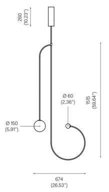 h 1822 – 2257 mm | ø 674 mm *Bitte geben Sie bei der Bestellung die gewünschte Länge der Leuchte an, gemessen von der Decke bis zur unteren Befestigung.