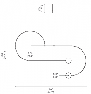 h 1305 – 3109 mm | ø 1900 mm *Bitte geben Sie bei der Bestellung die gewünschte Länge der Leuchte an, gemessen von der Decke bis zur unteren Befestigung.