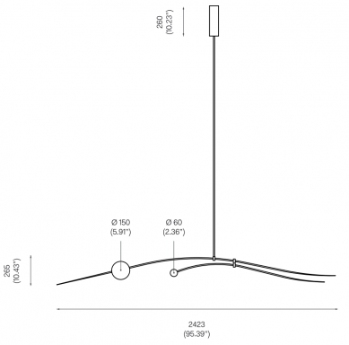 h 575 – 2522 mm | ø 2423 mm *Bitte geben Sie bei der Bestellung die gewünschte Länge der Leuchte an, gemessen von der Decke bis zur unteren Befestigung.