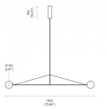 h 588 – 2358 mm | ø 1800 mm *Bitte geben Sie bei der Bestellung die gewünschte Länge der Leuchte an, gemessen von der Decke bis zur unteren Befestigung.
