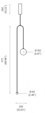 h 2087 – 4034 mm | ø 255 mm *Bitte geben Sie bei der Bestellung die gewünschte Länge der Leuchte an, gemessen von der Decke bis zur unteren Befestigung.