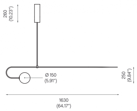 h 562 – 2509 mm | ø 1630 mm *Bitte geben Sie bei der Bestellung die gewünschte Länge der Leuchte an, gemessen von der Decke bis zur unteren Befestigung.